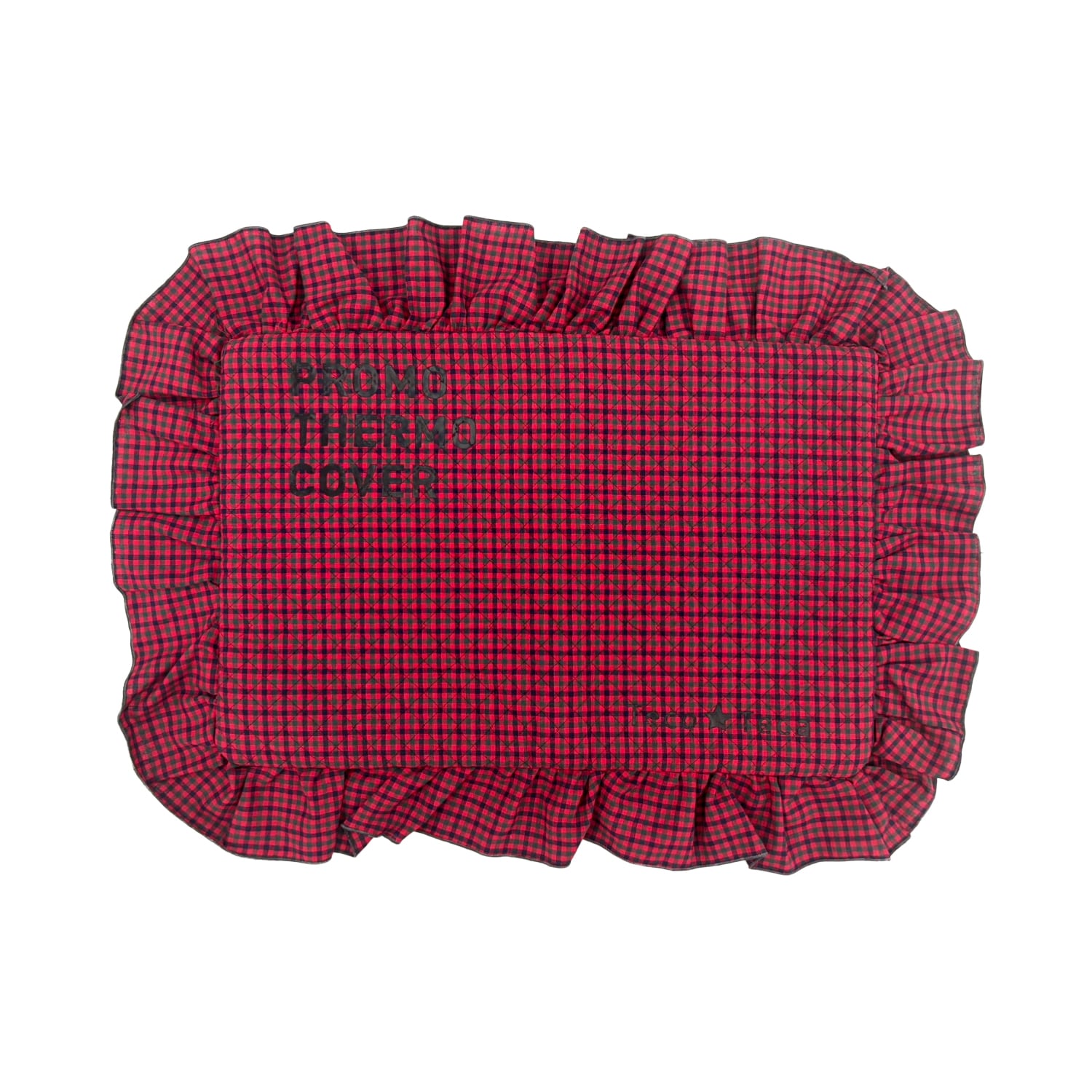 クラシックな赤チェックとフリルが可愛い、テコ★テカ コラボ プロモサーモマットSサイズ専用のカバーを作りました。