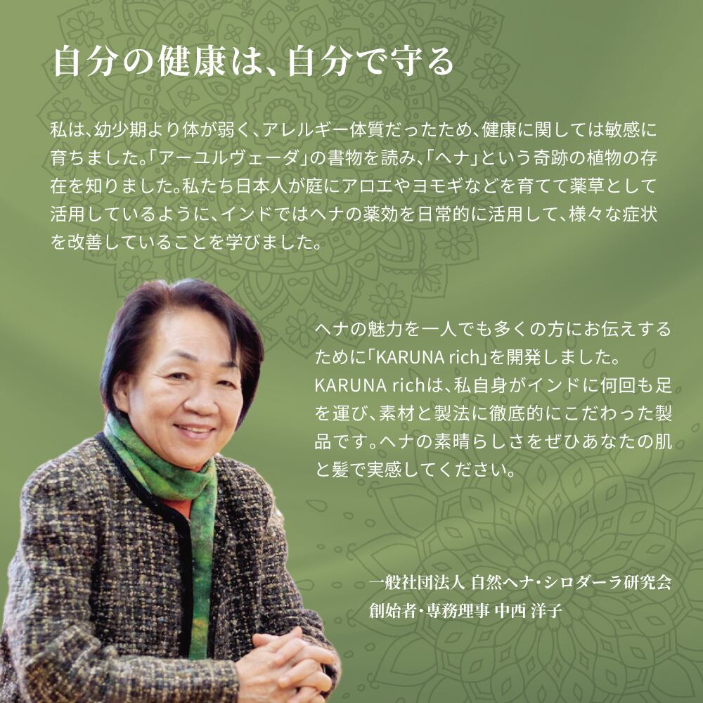 水、ココイルグルタミン酸、ココイルグリシンK、ココイルタウリンNa、ラウロミドプロピルベタイン、オリーブ油、スクワラン、アポガド油、ローズマリー葉エキス、ヒアルロン酸Na、ヘンナ、ニームエキス、アムラエキス、タカサブロウエキス、オタネニンジンエキス、ハトムギエキス、褐藻エキス、ベルガモット油、BG