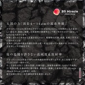 プロモサーモマット同様にブラックシリカを高純度に精錬して基材に配合。体温や太陽エネルギーを蓄熱し、さらに太陽光にも含まれる「育成光線」と呼ばれる波長4~14μm の遠赤外線を高レベルで放射することで、電気や蒸気を使わずに身体の深部からじんわり温め、体を癒やします。