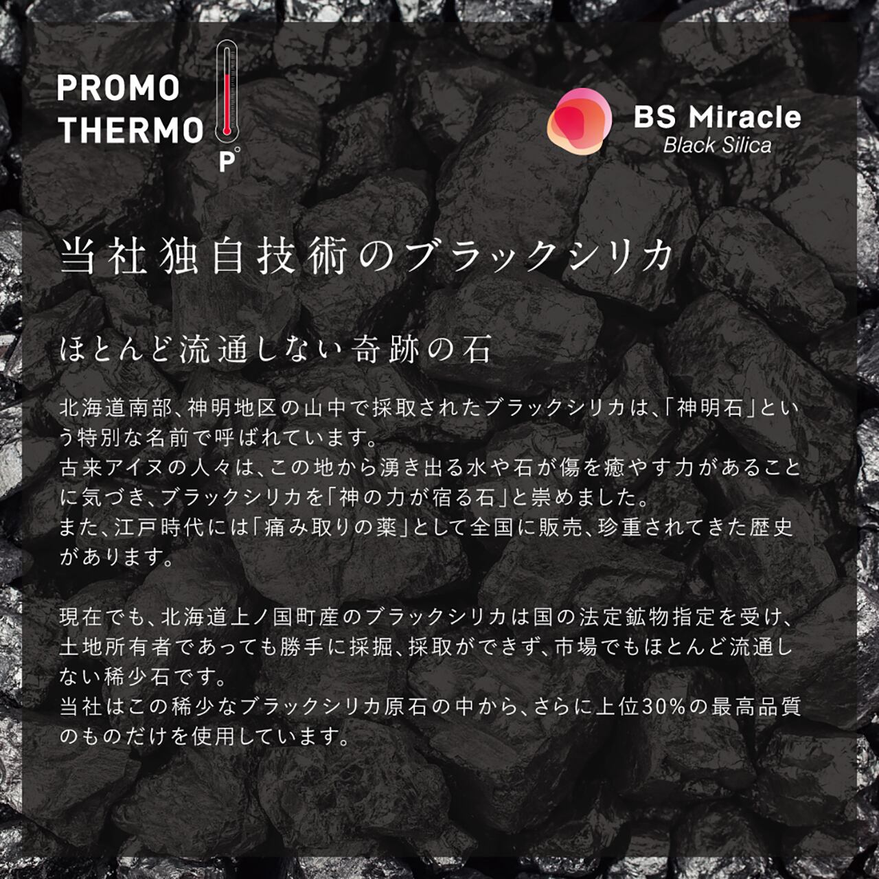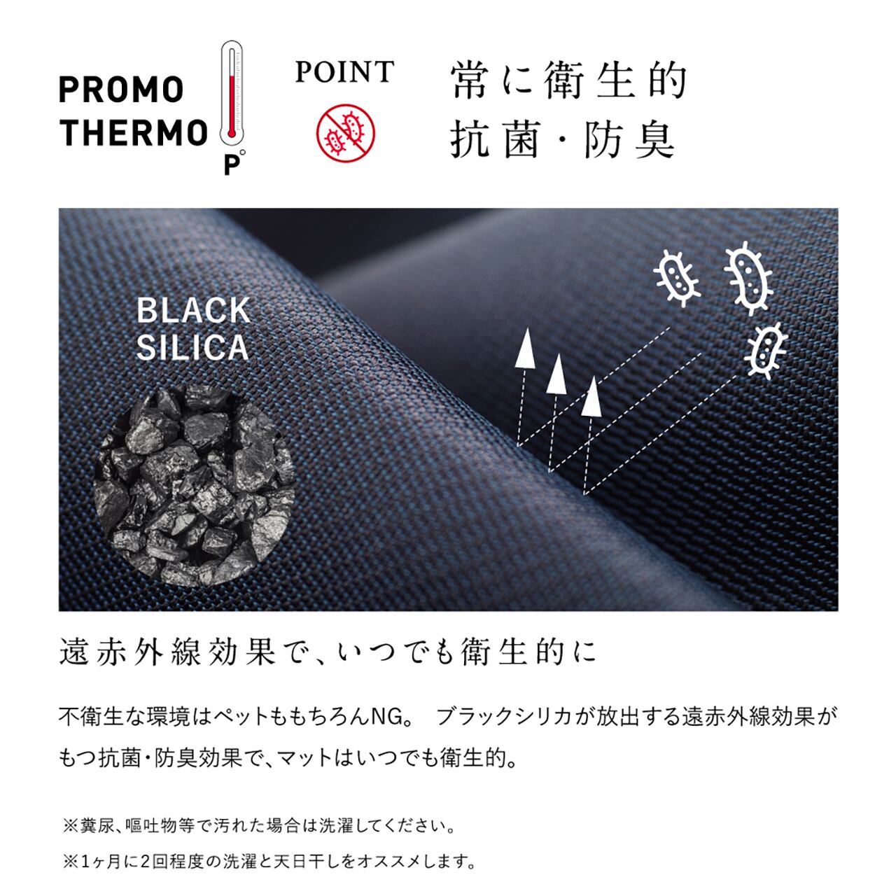 ●プロモサーモマットは、このブラックシリカの特性を最大限に活かした健康マットです。まるでひなたぼっこのように、心地よい温かさで冷えを防ぎ、人とペットの健康をサポートします。